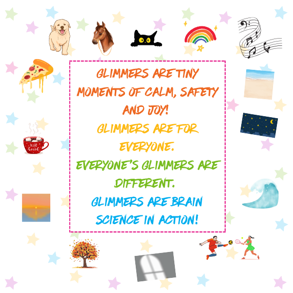 Glimmers are tiny moments of calm, connection, safety and joy!